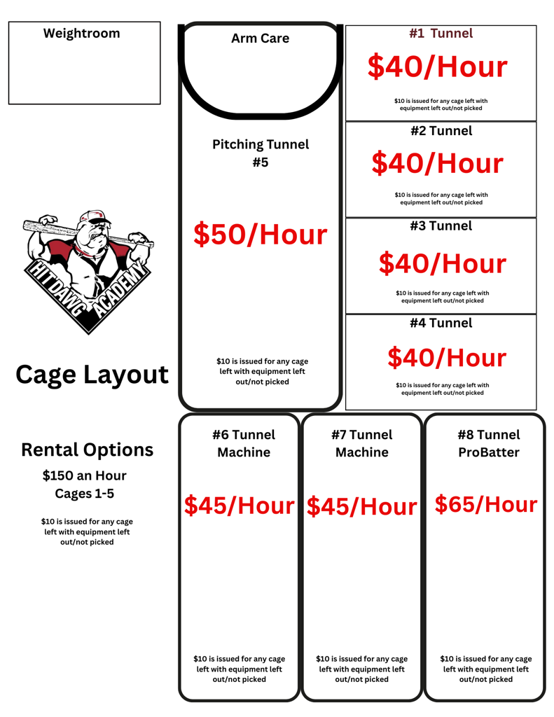 Please email hitdawgacademy@hotmail.com to reserve your space. Individual or Group Rentals Welcome!!